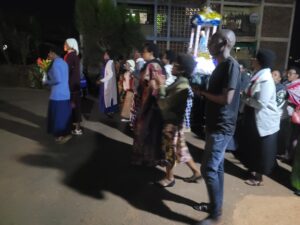 Tout au long du mois, la statue se promène de communauté ecclésiale de base en communauté ecclésiale de base et rassemble les chrétiens qui louent, prient le chapelet et accompagnent Marie dans une autre famille, d’un autre quartier.