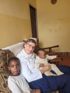 Après la messe, je suis allée porter la communion chez Ange et Fiston qui venaient d’avoir une petite Tery (de Thérèse) née mercredi. Maman est rentrée jeudi soir à la maison mais pour venir à la messe, c’était encore tôt…