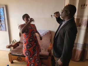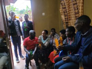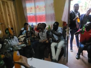 Ils ont apporté de l’Akuki (boisson alcoolisée à base de miel) et j’ai sorti des mi-choco apportés de France !!! C’était la fête !
