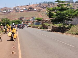En ce moment, nous n’avons plus d’eau qu’une seule fois (quelques heures) par semaine environ, plutôt moins que plus…. Il faut acheter l’eau qu’on va puiser à la source de la rivière, en bas de la vallée… ça devient compliqué… les barundi n’ont jamais vu ce problème… Ajouté au manque de carburant, de sucre, de papier-toilette, de bière, d’électricité… ça commence à être difficile pour les familles et on découvre tout à coup que tel ou tel père de famille est parti travailler à l’étranger…