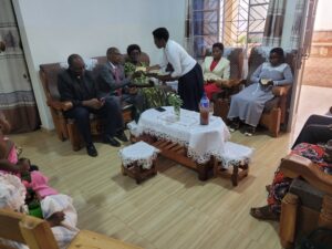 Nous avons ensuite pris le repas avec le délégué de l’éducation et les personnalités diocésaines et les discours ont suivi jusqu’à la nuit…