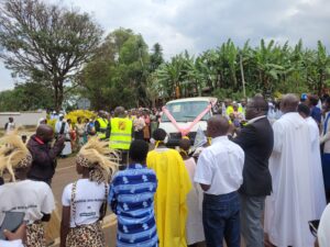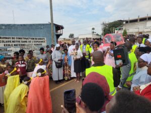Nous l’attendions au rond point qui la faisait entrer dans le quartier de la paroisse