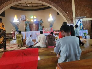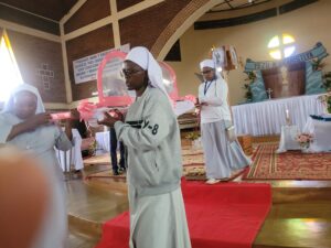 Dans notre paroisse, nous avons eu la grâce d’accueillir les reliques de Sainte Thérèse de L’Enfant Jésus. Ce reliquaire est conservé dans une chapelle Ste Thérèse des soeurs Béné Thérésa (de Ste Thérèse), près de la cathédrale de Gitega.
