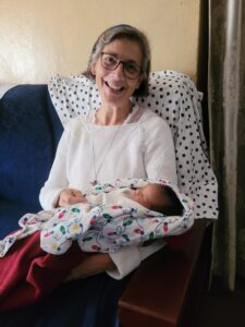 Emmanuel avec Akeranda, la grande soeur de Tery, Annick avec le cousin de Tery (un mois) et moi avec la princesse de 4 jours.