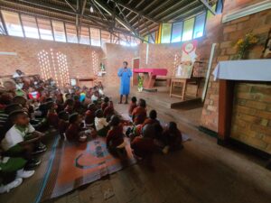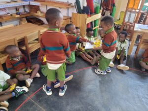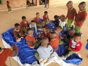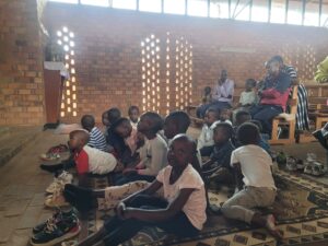 Après la louange, nous avons installé tous les enfants pour l’enseignement ensemble.